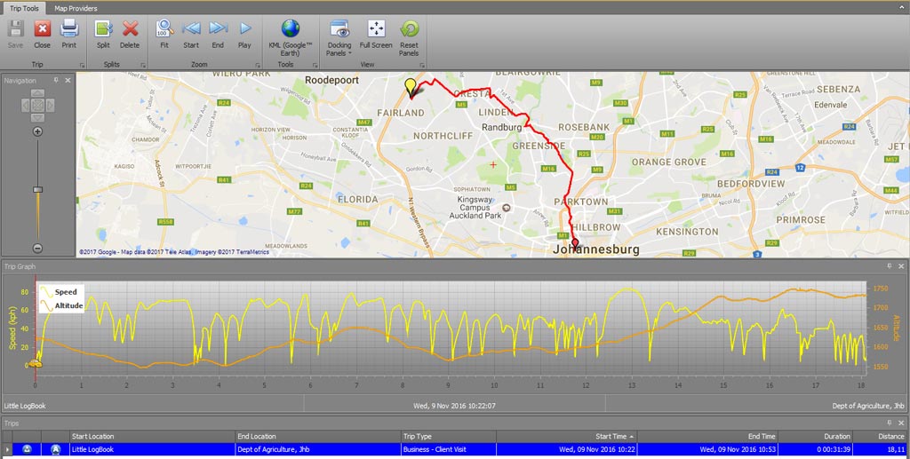 You can even export your trips to KML format for use with Google Earth. Trips exported to KML format can be e-mailed to and viewed by anyone with Google Earth installed.